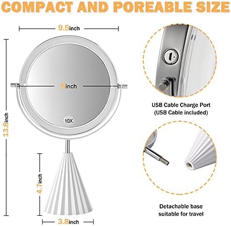 Makeup Mirror with Lights, 8 Inch Double Sided 10X Magnification, 3 Color Lighting, Dimmable Cosmetic Mirror with Touch Control 360°Rotation Tabletop Cosmetic Mirror
