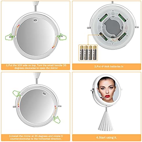 【360°Rotatable 】The makeup mirror with lights and magnification can 360 degree free rotation, help you to see more details.The shaft has passed 10,000 fatigue tests, proving its durability and non-loosening properties.