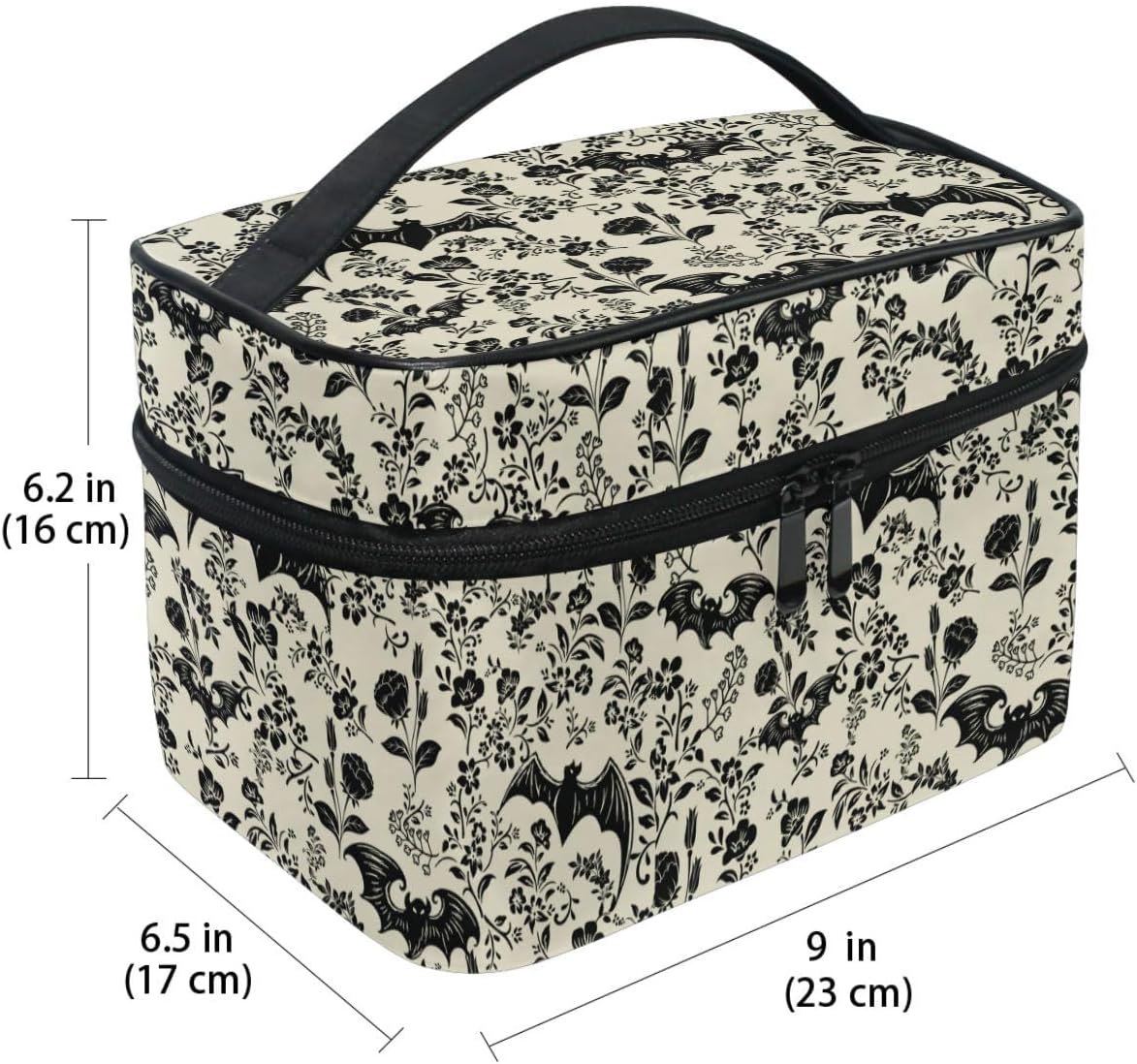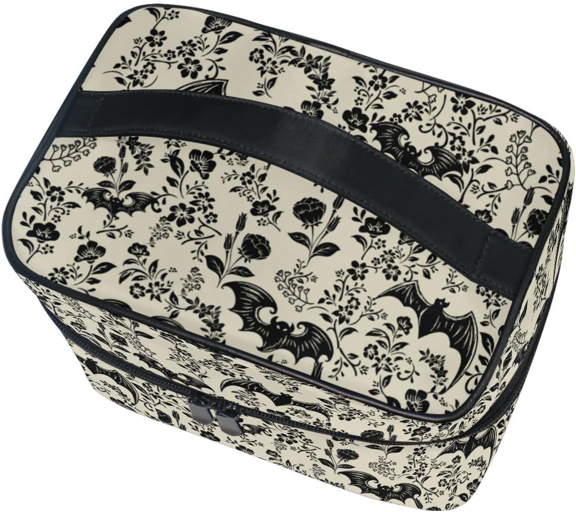 Makeup Train Case Bat Retro Flower Korean Carrying Portable Zip Travel Cosmetic Brush Bag Organizer Large for Girls Women