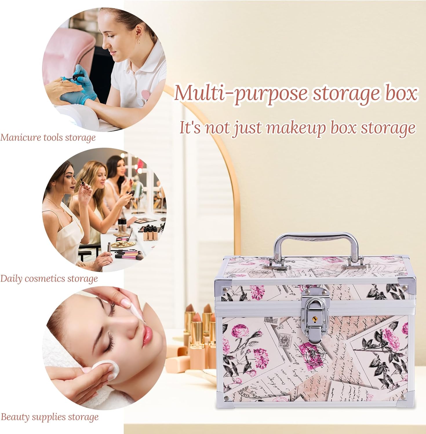 2 LAYER MAKEUP CASE: Our makeup train case is reinforced with metal edges and corners, lightweight and durable; the interior is divided into two layers, the top layer is a compartment for small makeup tools or jewelry, and the bottom layer is a large-capacity cosmetic storage space.