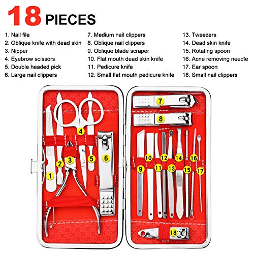 Manicure Set CHENYBNH Stainless Steel Nail Clippers 18 in 1 Professional Pedicure Kit for Woman & Man, Nail Care Tools with Luxurious Case(RED)