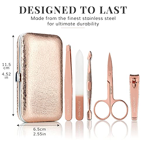 Manicure Set for Women & Girls, Professional Stainless Steel Nail Kit & Pedicure Kit with Luxury Travel Case by Lily England(Rose Gold)