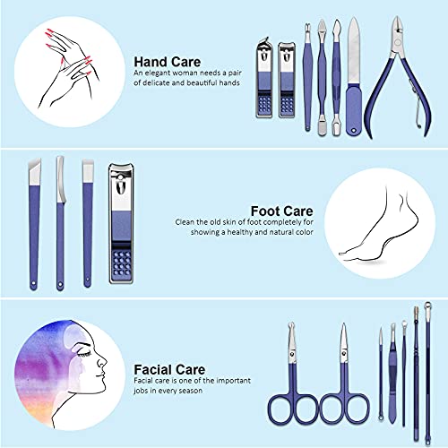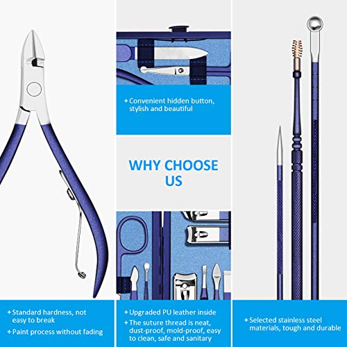 Manicure Set Nail Clippers Pedicure Kit 18pcs Stainless Steel Nail Cutter Care Tools Professional Grooming Kits with Travel Case for Women and Men