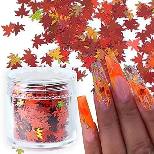 Maple Leaf Nail Glitter Sequins 3 Colors Holographic Fall Leaves Nail Flakes Sparkly Fall Nail Confetti for Acrylic Nails Spangles Polish Manicure Nail Art Supplies for Nail Art Decorations