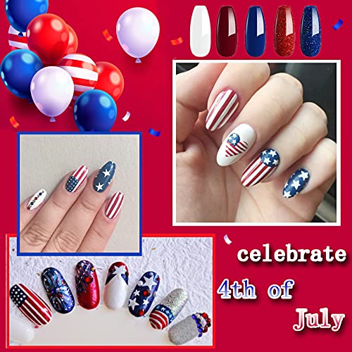 MEFA July 4th Gel Nail Polish Set 20+3 Pcs, Blue Red White Soak Off Gel Polish Yellow Glitter Gel Varnish with Glossy & Matte Top Coat and Base Coat for Nail Art Design Manicure Starter Kit Independence Day