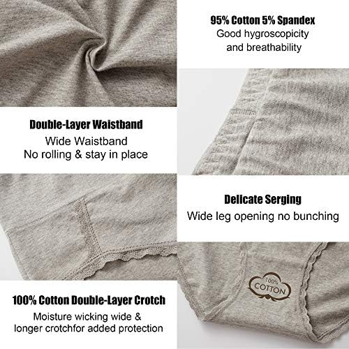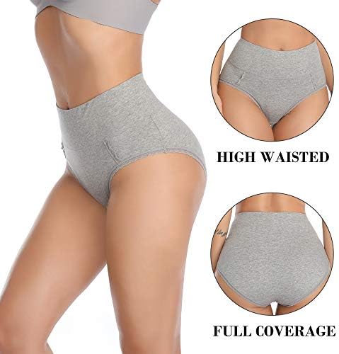 MISSWHO 6-Pack Women’s Cotton Underwear, S-4XL High Waisted Full Coverage Comfortable Brief Ladies Underpants Assorted Size