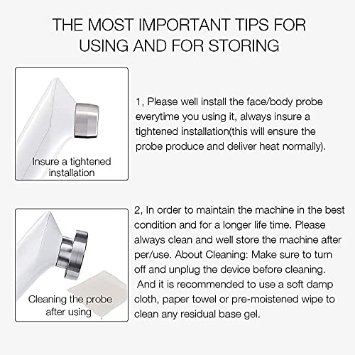 FACE/BODY TIGHTENING: MLAY rf with face probe 25W and body probe 50W. The RF triggers your skin’s own healing process, stimulates the skin to produce elastin fibers and collagen that you have lost over the years, so you can enjoy a long last results