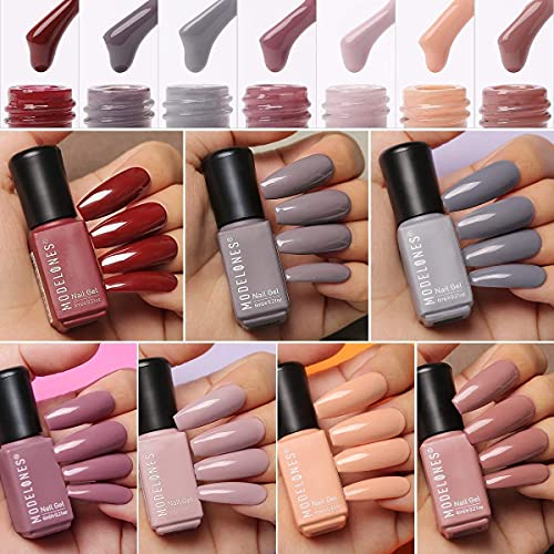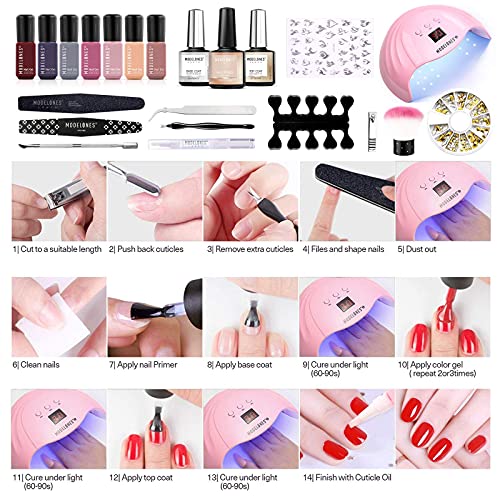 Modelones Gel Nail Polish Kit with U V Light 48W Nail Dryer 7 Nude Colors Gel Nail Polish Set, No Wipe Base Top Coat, Nail Primer, Nail Art Decorations, Manicure Tools, Integrated Manicure Kit