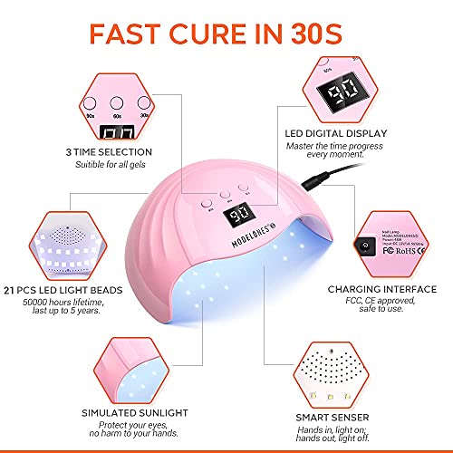 ★MODELONES LONG-LASTING GEL BASE AND TOP COAT: It keeps 15-45 days high gloss for different people. Brilliant gloss shine, durable & high volume, present striking color and required to be cured under the LED lamp.