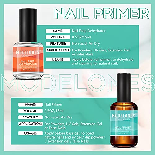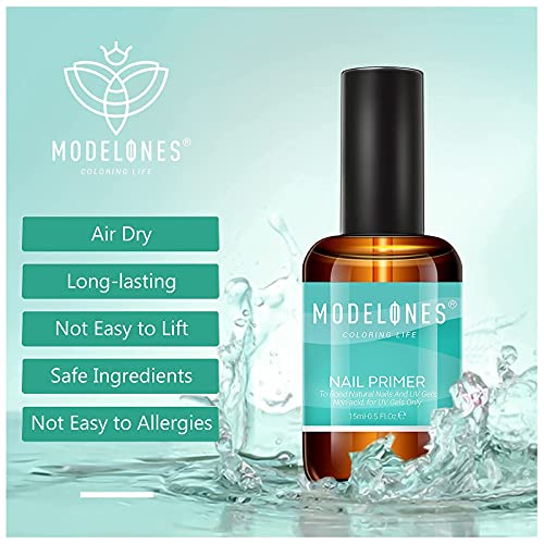 Modelones Nail Primer, Professional Acid Free Natural Nail Prep Dehydrate & Bond Primer, Nail Protein Bond, Superior Bonding Primer for Acrylic Powder and Gel Nail Polish 15ml