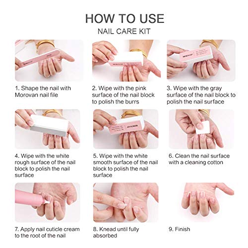 【Quickly Bring Healthy and Beautiful Nail Luster】Before filing nails with Morovan professional nail file, please clean the nails with cleaning Pads, then use nail buffer to smooth the surface of each nail, and use nourishing cuticle oil cream to promote health growing up.