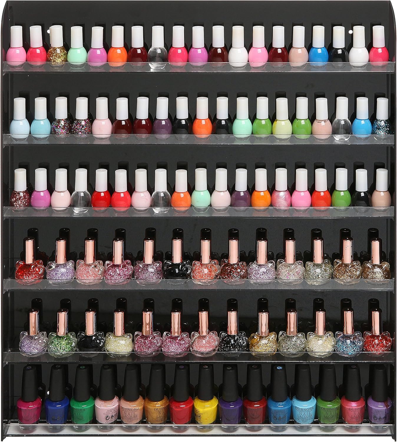 MyGift Black Premium Acrylic Wall Mounted Salon Nail Polish Rack, 6 Tier Display Shelf Storage Organizer – Holds up to 102 Nail Polish Bottles