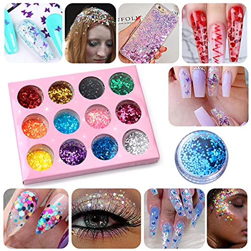 Nail Gems and Glitter – Nail glitter and rhinestones kit has 12 color nail rhinestones, 12 random colors chunky glitter flakes, 3 styles nail sequins like butterfly, circle and waterdrop.