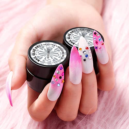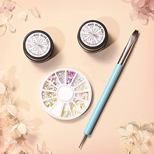 Nail Art Glue On Nails, Modelones 2PCS Rhinestone Glue (2X5ml) with Dual-Use Nail Art Brush, Nail Gems Rhinestones Diamonds Jewelry Wheel for Nails, Adhesive Resin Nail Art Supplies Tool Kit