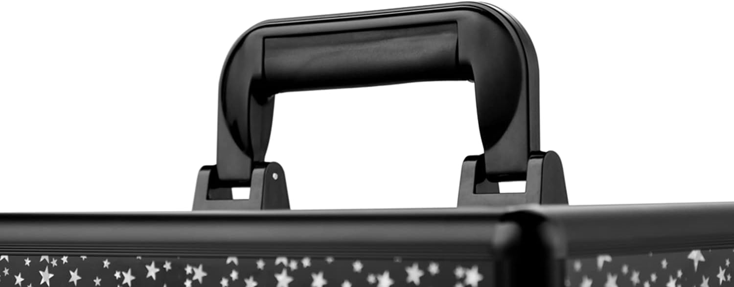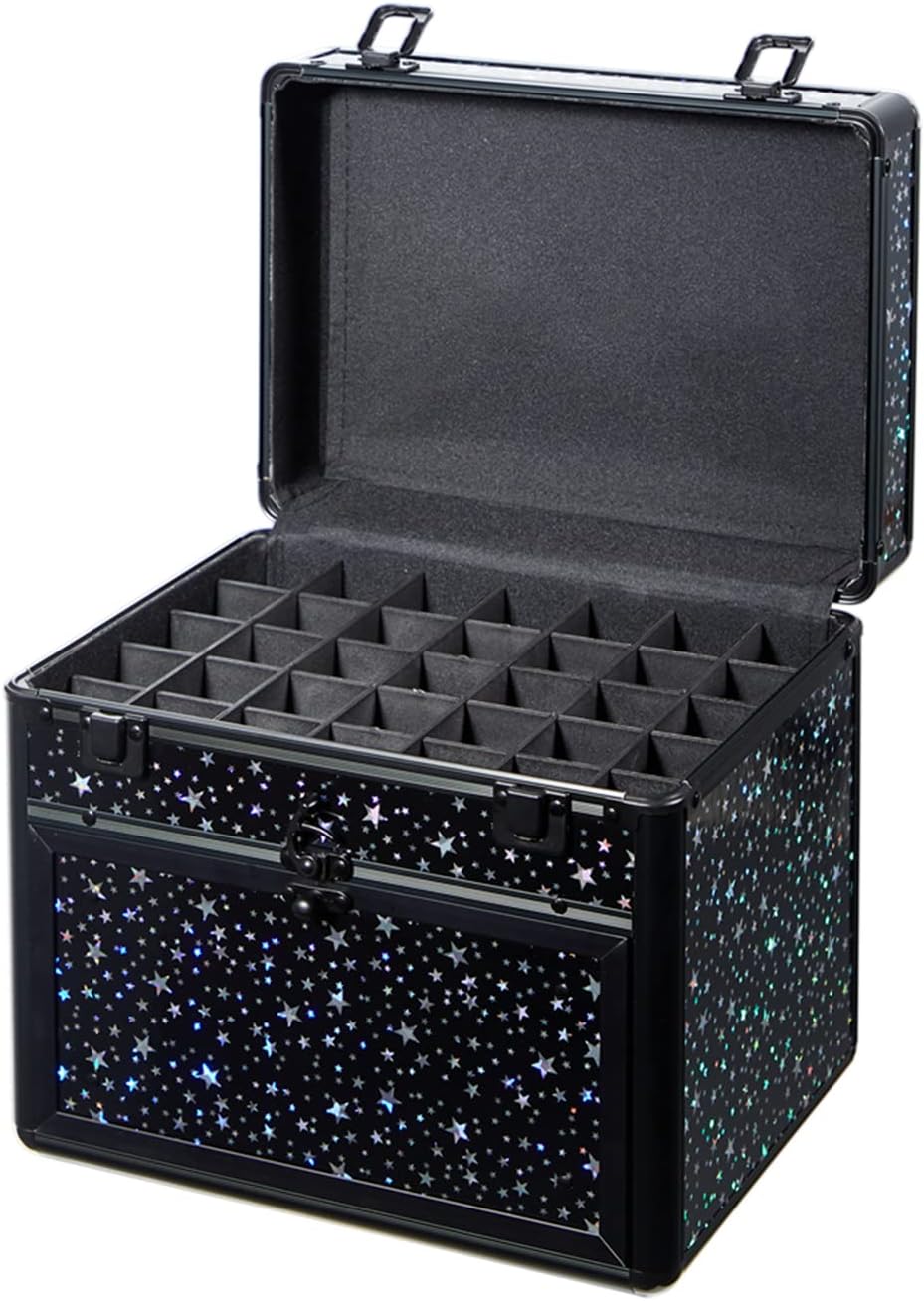 Nail Polish Case With Drawer and Dividers Makeup Travel Case Portable Cosmetic Organizer (black with shiny star)
