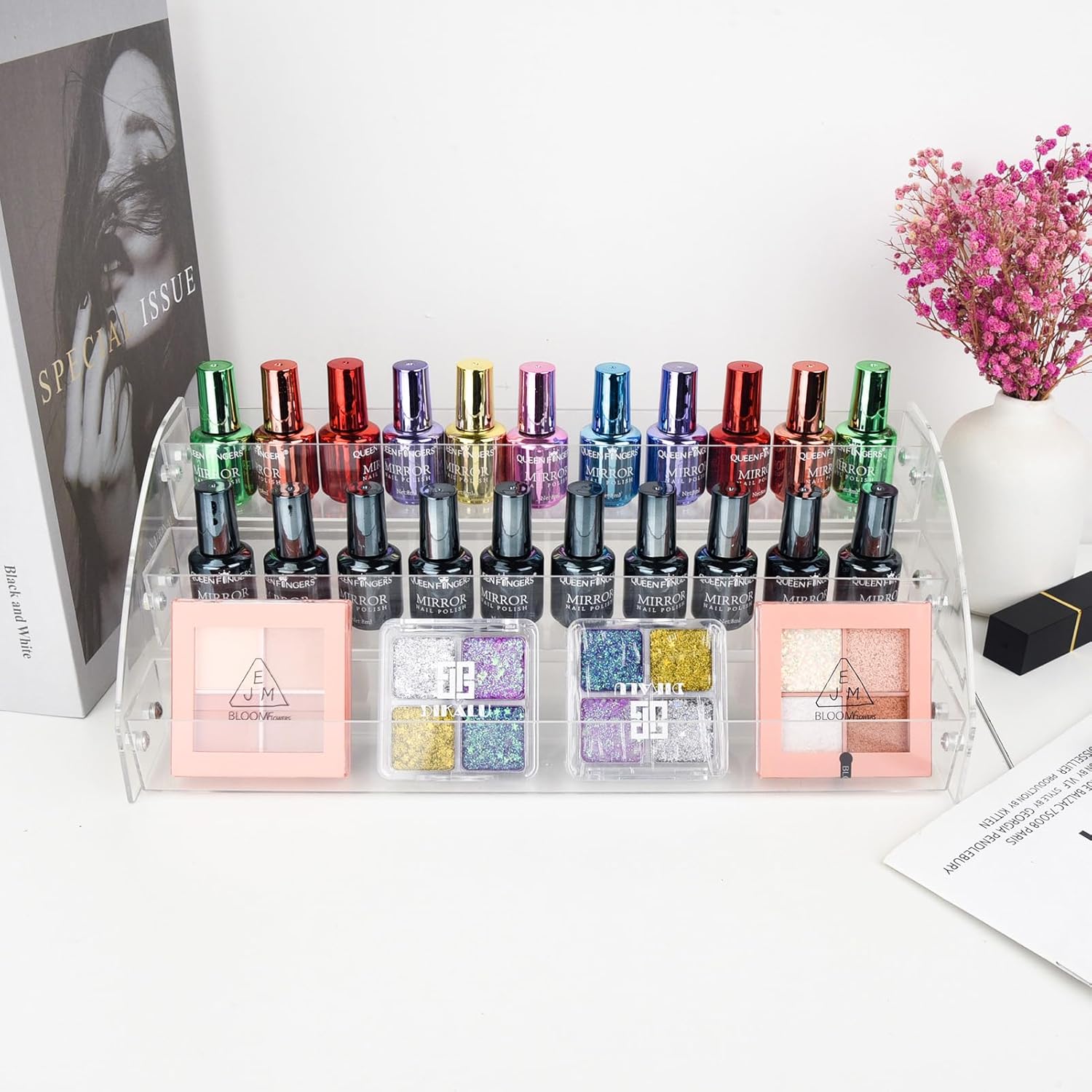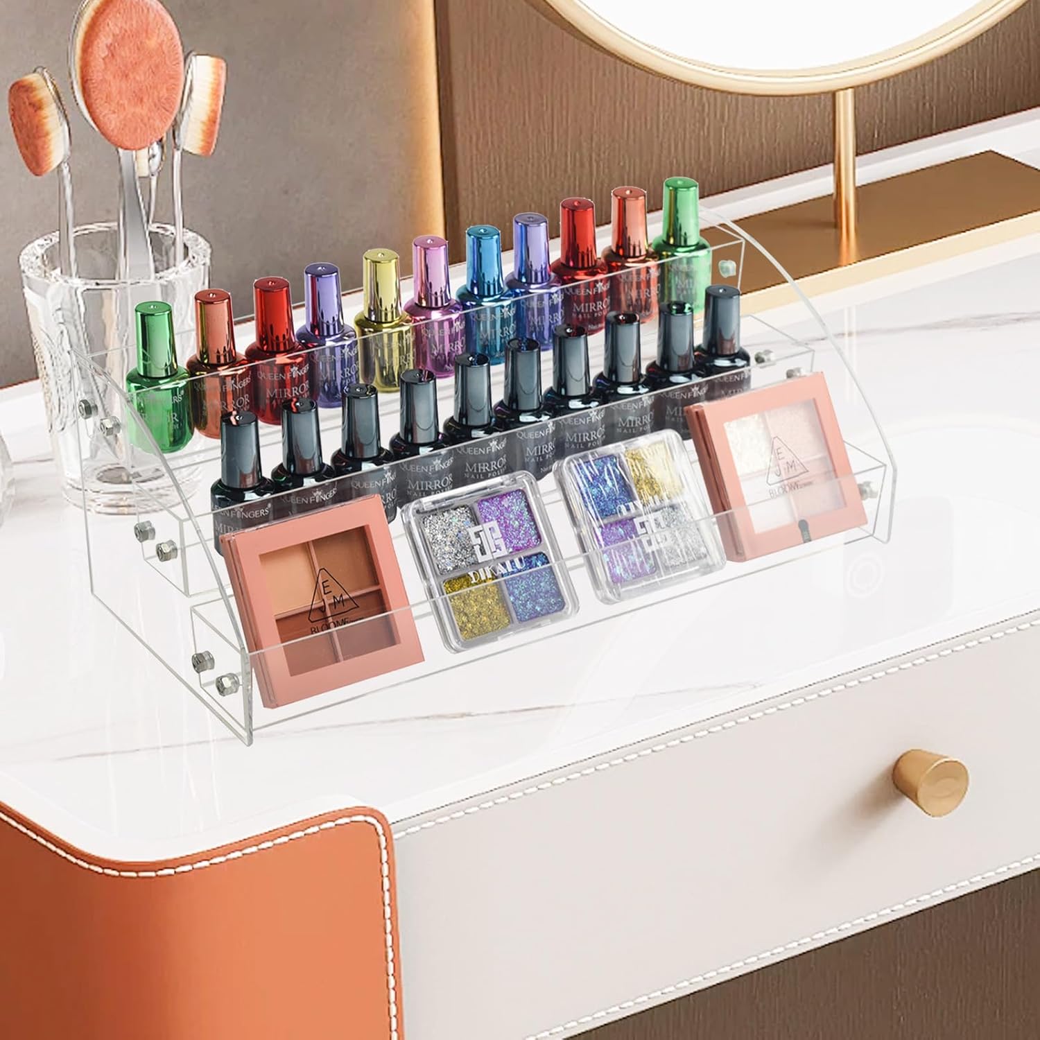 Clear Nail Polish Organizer Shelf Rack, Acrylic Display Stand For Nail Polish Sunglasses, Paint Essential Oils, lipsticks, eyeshadow powder and other small cosmetics.