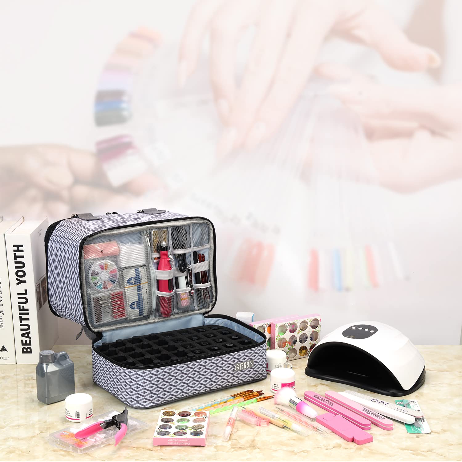 Nail Polish Organizer Bag,Double Layer Nail Polish Storage Fits a Nail Lamp and 40 Bottles,Great Size Nail Storage Organizer For Nail Drill,Nail Supplies Set (Bag Only)-Grey Multi