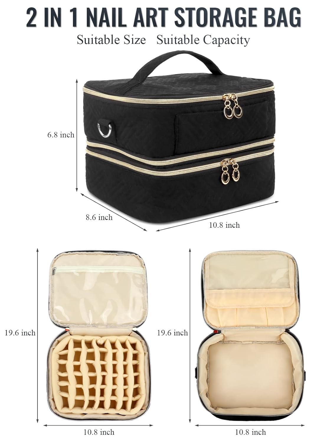 Sturdy Storage Bag Handheld: Each layer of nail bag organizer case has a separate handheld, so you can easily use one of the layers separately.Reinforced double handle has enough strength to hold your tons of nail polish bottles.