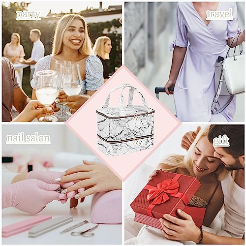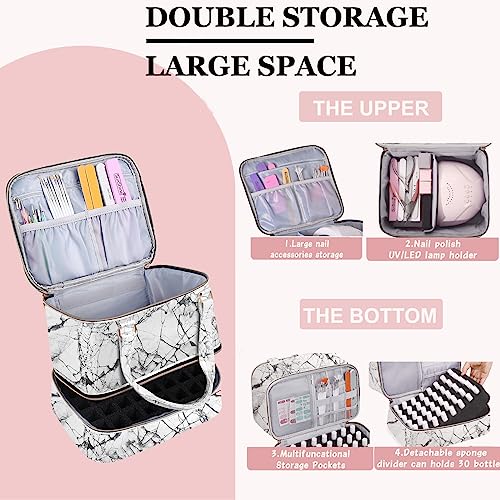 Nail Polish Organizer Case – Holds 30+ Bottles (15ml/0.5 fl.oz) and 1 Nail Lamp, Upgraded Double-layer Nail Polish Carrying Case Nail Polish Storage Bag with Handles (WHITE)