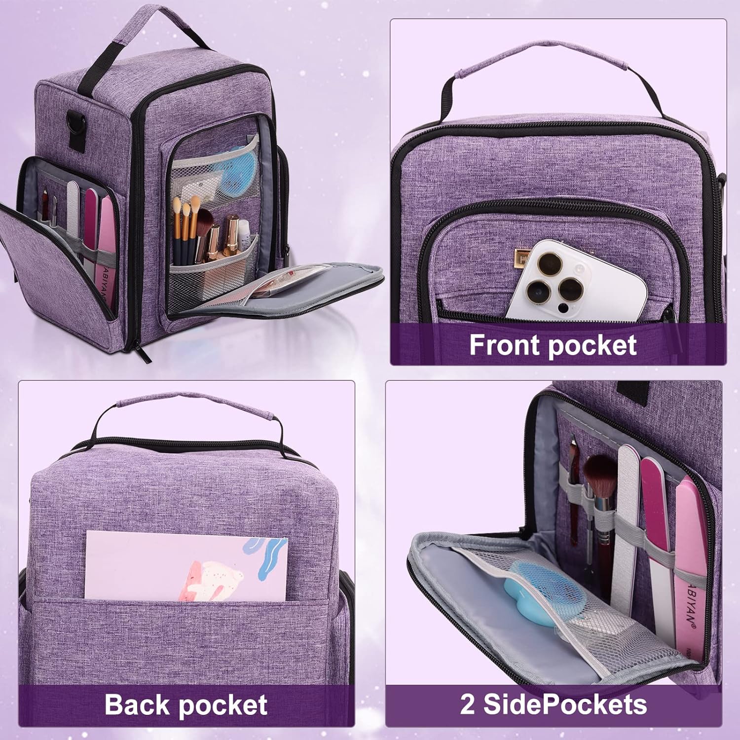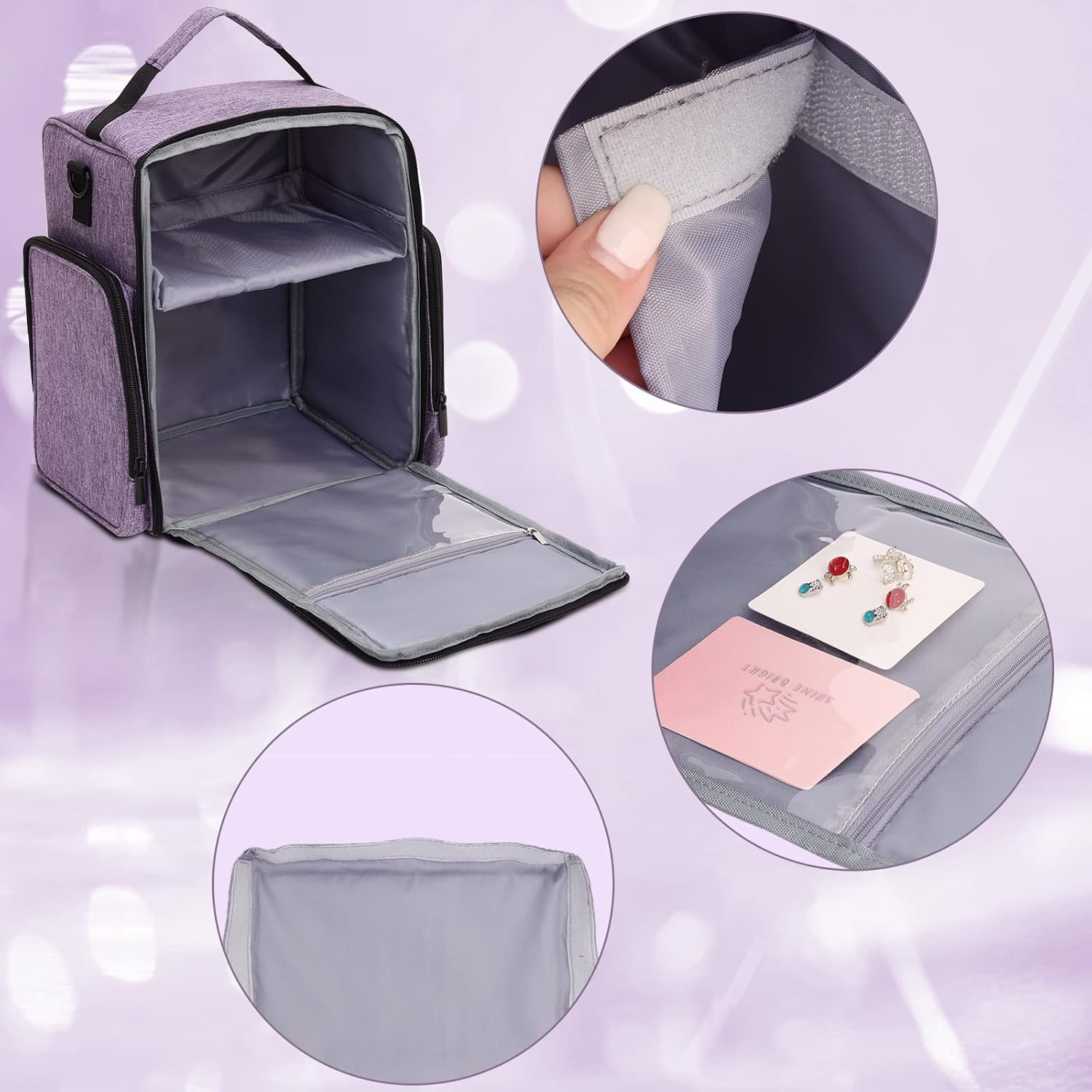 3 Options for Carrying: Nail polish carrying case with 3 ways to carry as your wish: handbag, shoulder bag, or attached to the suitcase. The nail polish carrying bag is attached with sturdy handles, a detachable adjustable shoulder strap with a sponge pad to help relieve the stress from you, and a sturdy strap has been added to the back of the travel nail polish bag organizer case to securely fasten the bag to the luggage handle, making your journey easier.