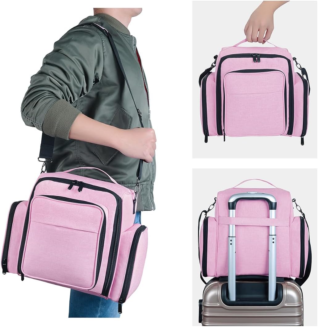 Nail Polish Organizer Case Holds 60 Bottles Portable Travel Storage Box with 2 Detachable Bags, Designed for Women’s Nail Tools, Essential Oils and Cosmetics Sets Pink