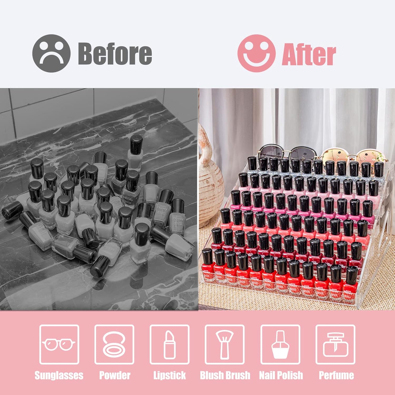 Nail Polish Organizer Sunglass Organizer – 5 Layers Nail Polish Holder Sunglass Holder – Acrylic Nail Polish Stand Sunglass Display Stand – Nail Polish Rack Sunglass Display Rack – Clear