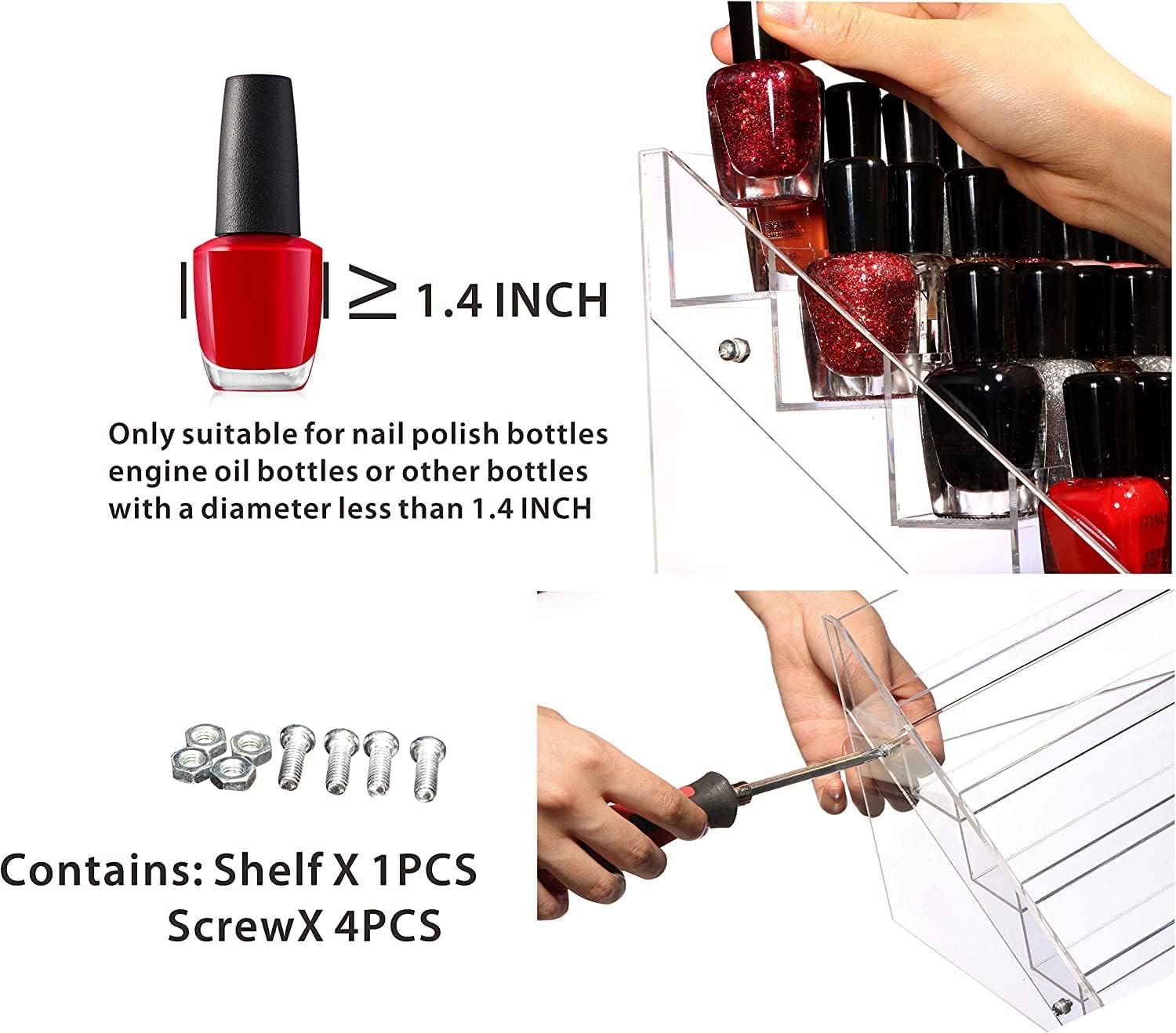 ✅【Easy installationL】 Nail polish rack Only four screws are needed to assemble them (including screws), nail polish racks for the counter is very easy to assemble. It can be placed on your counter top or bathroom, making your counter neater with more space.