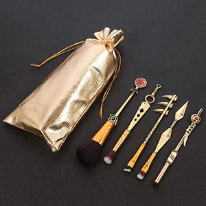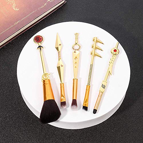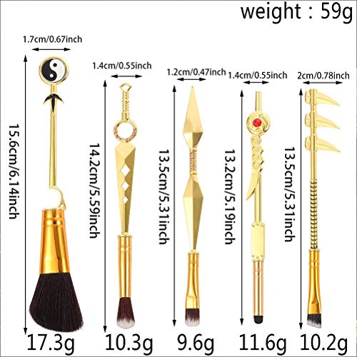Naruto Makeup Brushes 5 Pack Set Metal Handle Velvet Gift Pouch Anime Peripheral Kunai Prop Konoha Leaf Village Shinobi Cosplay Birthday Thanksgiving Christmas gift for Weeb Naruto Fans (Antique Gold)