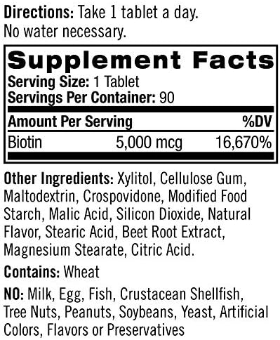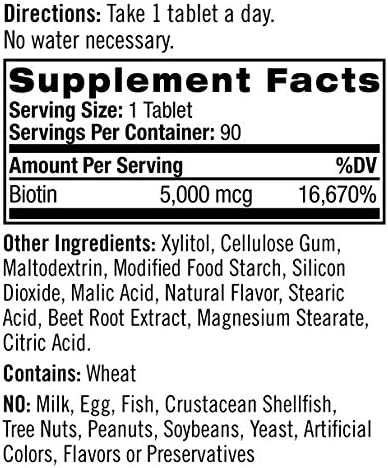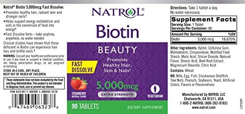 Natrol Biotin Beauty Tablets, Promotes Healthy Hair, Skin and Nails, Helps Support Energy Metabolism, Helps Convert Food Into Energy, 5,000mcg, 90Count