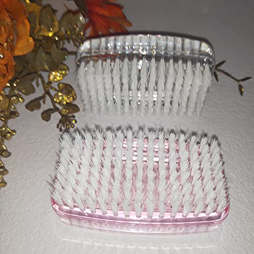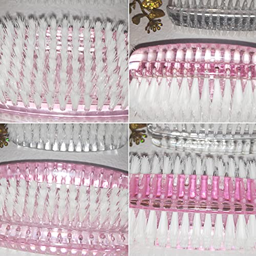 NewFerU Nail Scrub Brush Cleaner X 2 Plastic in Nylon Bristle with Drip Holder Set for Cleaning Hand Finger Foot Toe, Fingernail Toenail Scrubbers for Men Women Kids Manicure Pedicure (Clear + Pink)