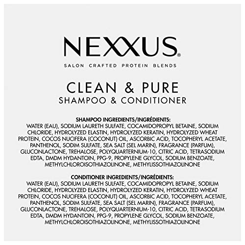 Want a shampoo and conditioner hair care regimen that leaves hair deeply nourished, soft, smooth and strong? Discover Nexxus Clean and Pure Shampoo and Conditioner. This cleansing shampoo detoxifies hair while replenishing vital nutrients. The hydrating conditioner then conditions and nourishes hair, leaving strands moisturized without the weigh down. Nexxus Clean & Pure hair products are packed with powerful ingredients to purify and revive your hair. Formulated to be silicone, dye and paraben free, this shampoo and conditioner 2-pack is gentle and safe to use every day. Great for all hair types, you can unleash your hair’s natural smoothness all day long. Repairing hair is a multi-step process that includes a combination of hair products. This clarifying shampoo and conditioner goes well with Nexxus Clean & Pure Invigorating Detox Scalp Scrub, and Nexxus Clean & Pure Nourishing Detox 5in1 Invisible Hair Oil. For a deep detox, start your hair care routine with Clean & Pure Scalp Scrub to help remove impurities including product and oil build-up. Next, cleanse with Clean & Pure Shampoo. Last, smooth Nexxus Clean & Pure Conditioner onto wet hair and wait three minutes before rinsing thoroughly. Trust your beautiful, healthy hair to the power of Nexxus.