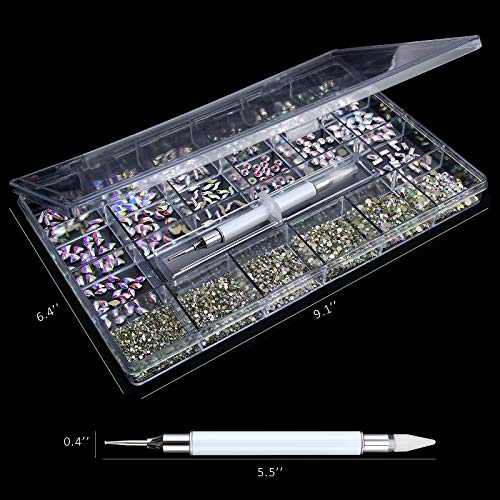 Nibiru Nail Rhinestones Kit, 3830pcs Multi Shapes Glass Crystal AB Rhinestones for Nail Decoration Mix Size Flatback Nail Jewels with Professional Wax Pen, Packaged in Diamond Storage Box (crystal ab)