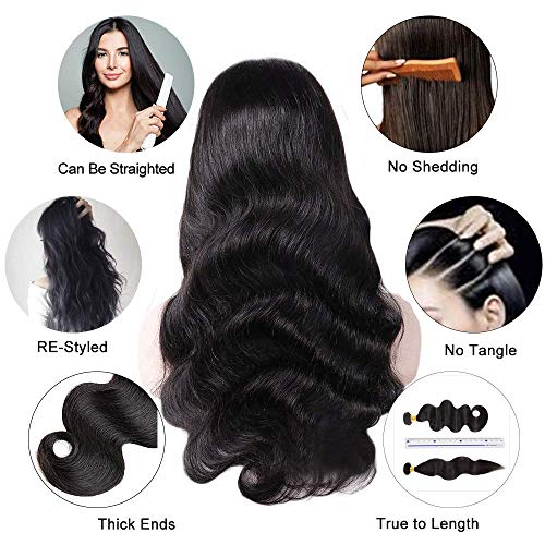 (1)Hair Material: 100% Brazilian Body Wave Human Hair 13×4 Lace Frontal Wigs with Baby Hair Free Part.