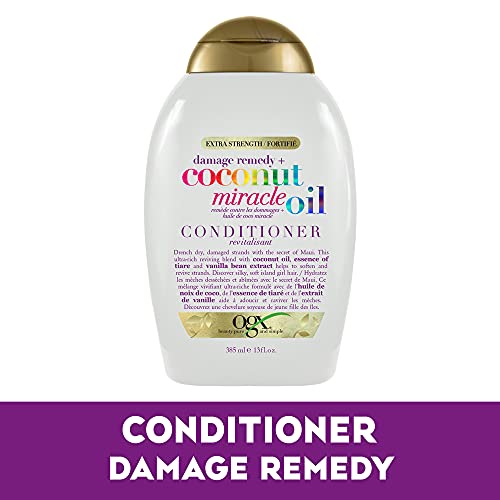 OGX Extra Strength Damage Remedy + Coconut Miracle Oil Conditioner for Dry, Frizzy or Coarse Hair, Hydrating & Flyaway Taming Conditioner, Paraben-Free, Sulfate-Free Surfactants, 13 fl oz
