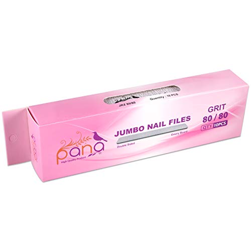 PANA USA 10 pcs Professional Nail Files Buffers JUMBO Size Double Sided Emery Board Washable – For Natural & Acrylic Manicure Pedicure Tools Home and Professional 10 Pieces Pack (Zebra, Grit 80/80)