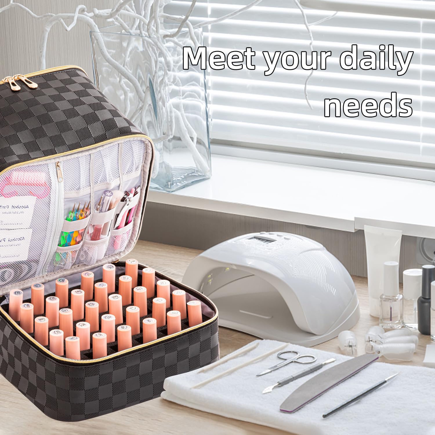 Our KGMCARE Double-Layers Nail Polish Organizers and Storage is designed for slove your problem. This nail polish travel bag is amazing. You can take your nail polishes and polygels to girl nights whenever you hang out with friends and this bag makes it so much easier and more organized to do that.