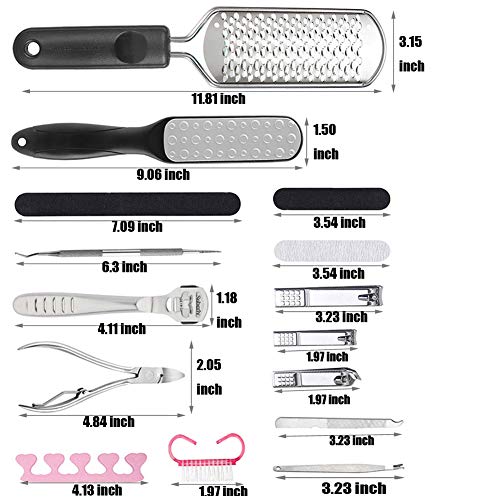 Including stainless steel , dual sided foot file callus remover, nail file, nail and toenail clipper etc.