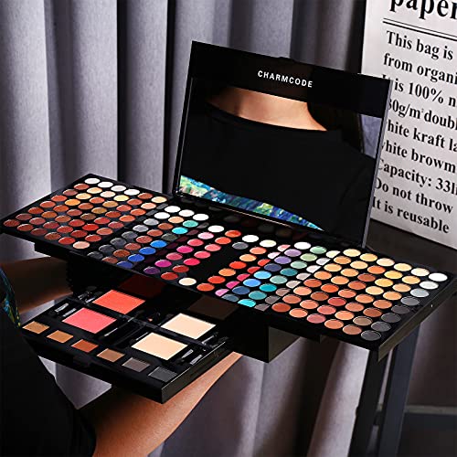 Professional Makeup Kit for Women Full Kit with Mirror All In One Makeup Gift Set for Teens 180 Color Eyeshadow Palette 2 Blush 2 Powder 1 Eyeliner 4 Eyebrow Make Up Sets Matte Shimmer Mixing Pallet Eye Shadow