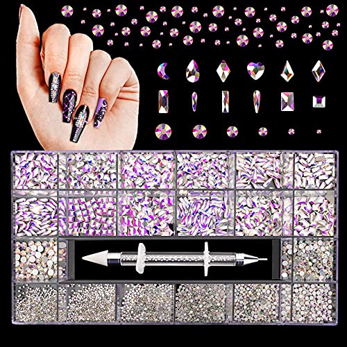 Professional Nail Crystal Rhinestones Kit, 3100pcs Mixed Shapes Glass Crystal 3D AB Rhinestones(Mix Sizes) and Rhinestones Wax Pen for Nails Art Decoration with Diamond Storage Box