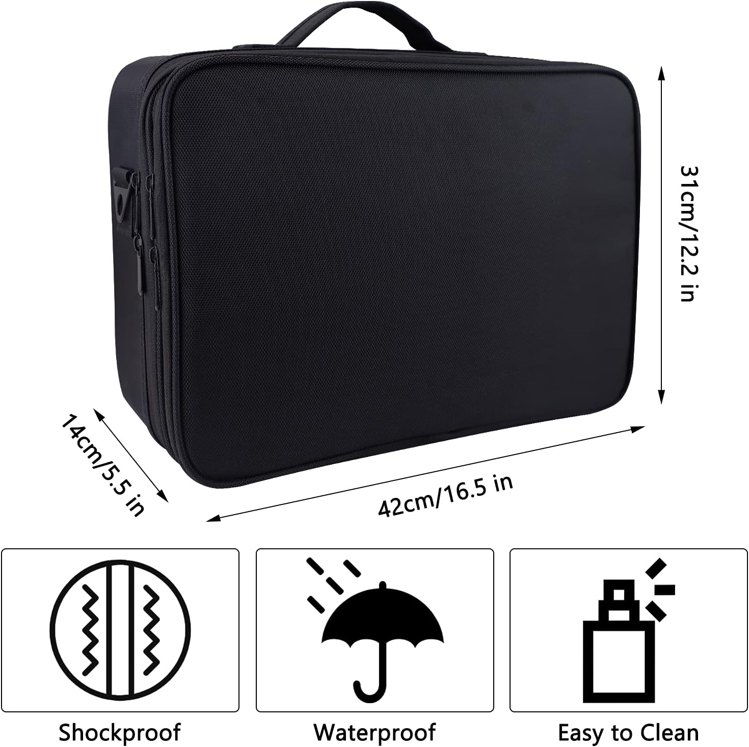 Be the first to review “Professional Travel Makeup Case 16.5 Inches Large Make Up Bag Cosmetic Train Case Portable Artist Storage Organizer Bag with Shoulder Strap for Makeup Brushes (L-Black)”