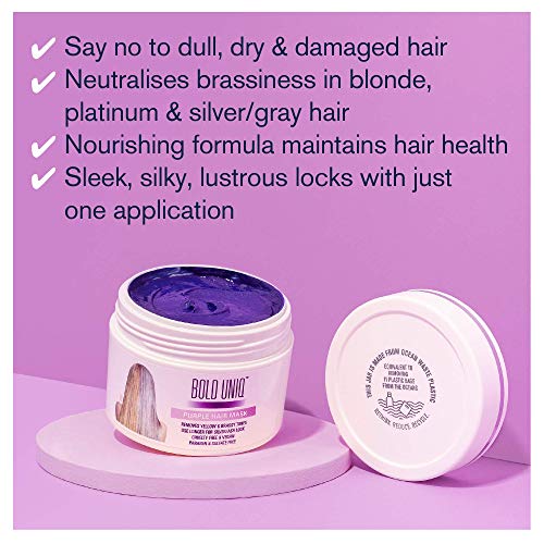 Purple Hair Mask for Blonde, Platinum and Silver Hair: BOLD UNIQ by B Uniq Blue Masque to Reduce Brassiness and Condition Dry, Damaged Hair – Sulfate Free Toner (200 ml) .