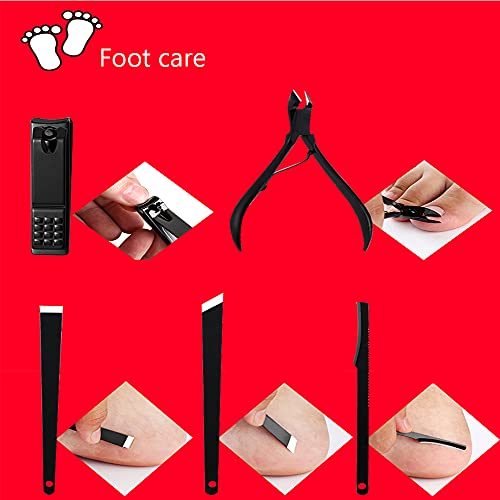 Qimouwp Manicure Set Premium 19Pcs Nail Clippers Pedicure Kit Professional Grooming Blackhead Remover Ear-Pick Tools Stainless Steel Cuticle Trimmer Nails Hands Foot Care Set for Men and Women Black