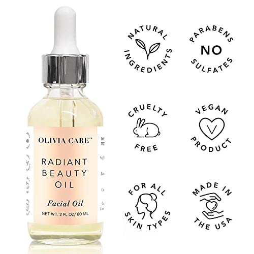 Radiant Beauty Facial Oil By Olivia Care – Infused with Argan, Safflower, Vitamin E & Geranium Essential Oil – All Natural – Hydrating, Anti-aging & Antioxidants – Remove Wrinkles & Clear Pores – 2 FL OZ