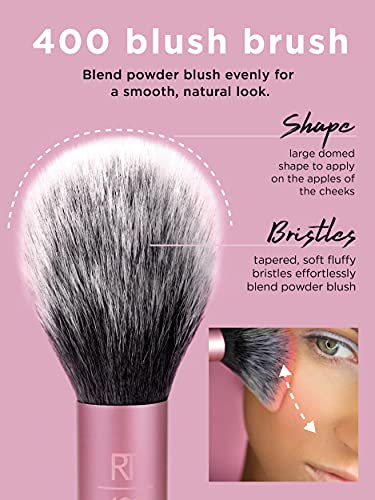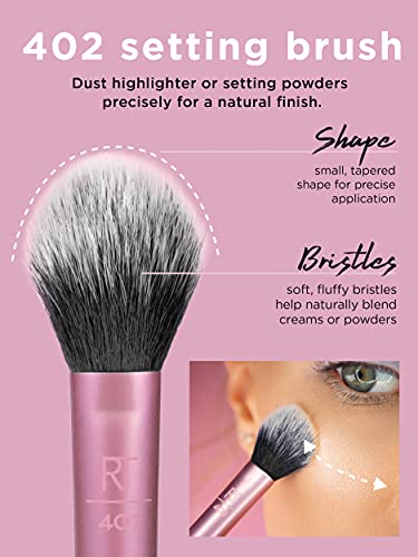 Real Techniques Everyday Essentials Set is a one-and-done set for pro-styled looks. The set comes with the brand’s fan favorites: 400 Blush Brush, 300 Deluxe Creasing Brush, 402 Setting Brush, 200 Expert Face Brush and the Miracle Complexion Sponge. It is best used with foundation, concealer, blush, highlighting, and shadow to master face, cheek, and eye makeup. For best results, clean them weekly with our brush cleansing gel. Real Techniques is one of the first brands to bring prestige quality, award-winning, and innovative tools at a great value to the beauty obsessed around the world. Since 2011, we have been creating tools and accessories to help make the most of your favorite makeup. With a beauty community of over 5 million, Real Techniques strives to inspire, educate, and empower our fans to make the most of their favorite products. Whether you’re striving for your best no-makeup look or about to make your runway debut, Real Techniques has the perfect tool for you. Our Brushes Take your look to the next level with our individual brushes and brush sets. From foundation to eye shadow and from cream blush to setting powder, accentuate your favorite features. Our lightweight, prestige quality, easy to use, and easy to clean brushes help you create defined contours, build coverage, and layer on your best makeup looks. Our Sponges Optimize your beauty routine with our versatile makeup sponges, designed with a revolutionary latex-free foam technology to evenly blend makeup for a smooth, enhanced finish. Our miracle sponges can be used damp or dry. As the makers of the #1 Makeup Sponge*, the Miracle Complexion Sponge®, we bring you the perfect sponges to help you: build coverage with liquid foundation, smooth on seamless powder, blend body makeup, and much more!