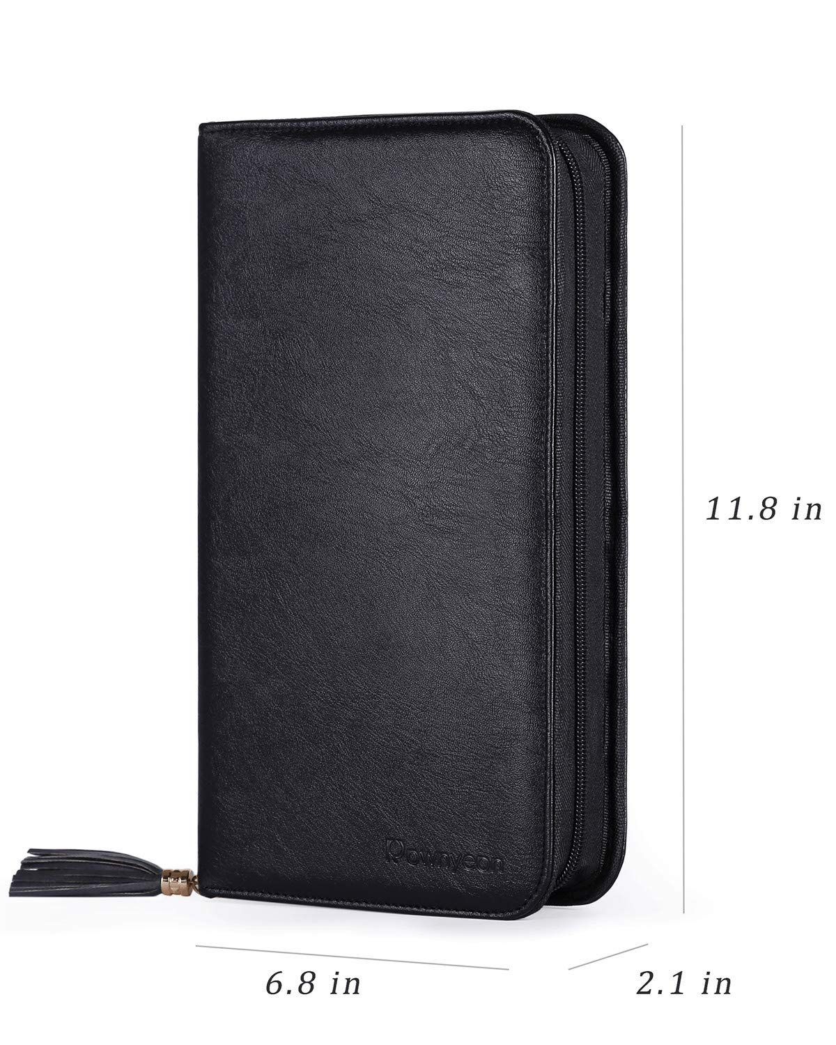 Rownyeon Professional Makeup Brushes Organizer Bag Makeup Artist Cosmetic Case Leather Handbag Black Travel Portable(Only Bag)