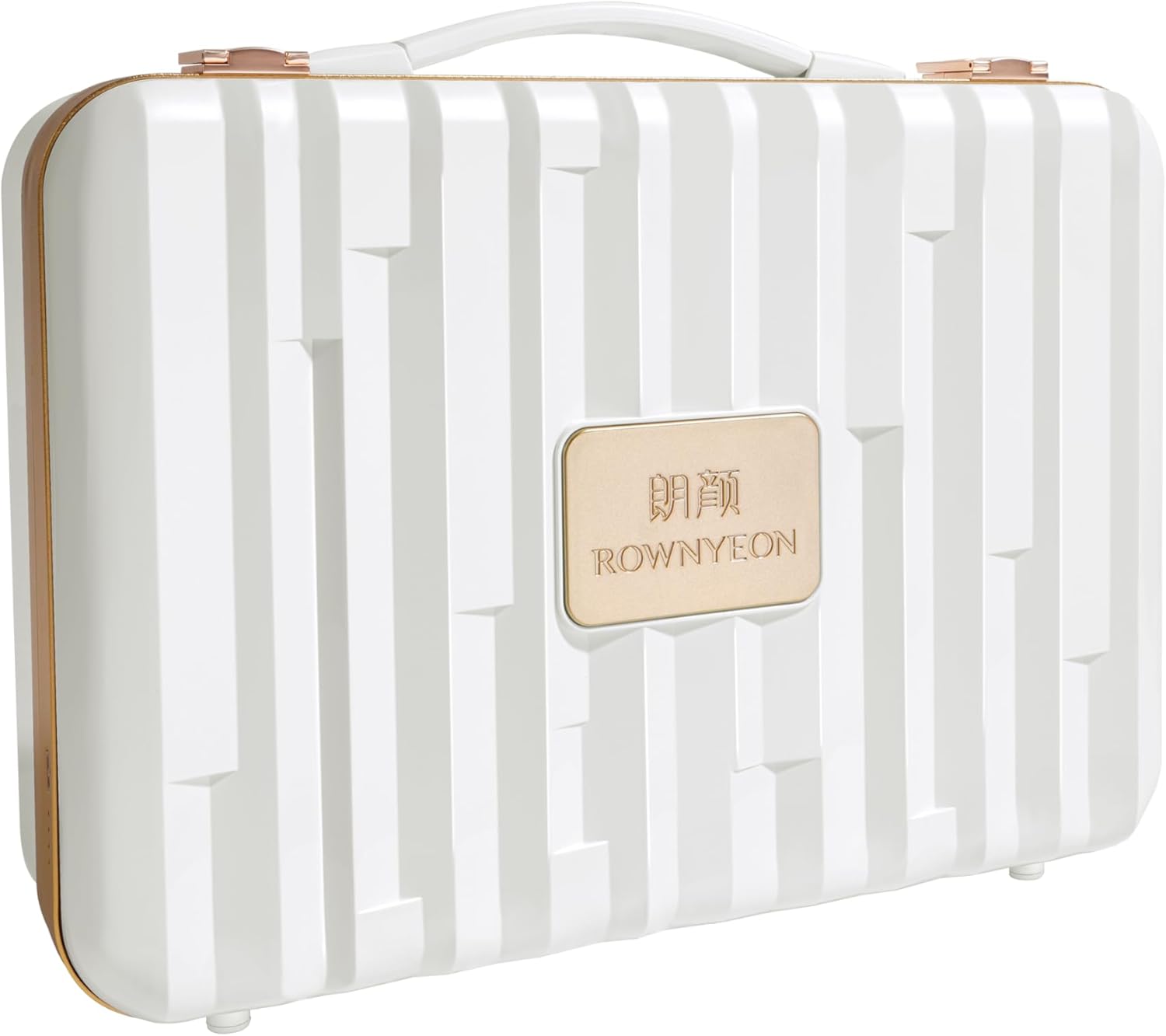 ROWNYEON Travel Makeup Case With Light Up Mirror Removable divider Portable Train Case Organizer Makeup Box for Girls Makeup Artist, Makeup Tools, Hairstylist Travel Makeup Case With 10x Mirror(White)