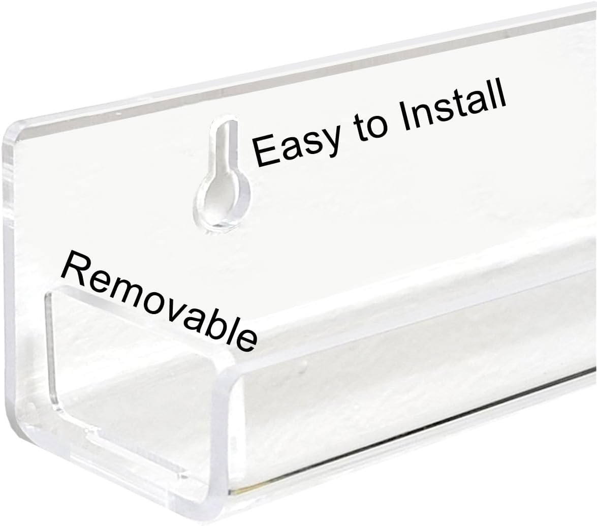 ROYALITA 4-Pack Acrylic Shelves – Nail Polish Organizer Wall Mounted Shelves, Nail Polish Rack with Removable Anti-slip End Inserts, Nail Polish Holder for Bottles Nail Polish Display & Storage Shelf