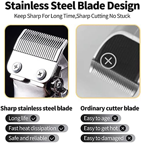 ✂ High Performance T-blade Haircut: This trimmer has a 10W powerful motor, with a non-slip surface and easier to hold. The sharp and durable precision stainless steel T-blade can efficiently achieve smooth and close cutting. Electric Pro Li trimmer is suitable for oil head, engraving push white, vintage hair style, bald head, which can create a variety of hairstyles.