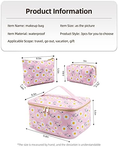 SAMZSKY Makeup Bag Set, 3 Pcs Portable Travel Cosmetic Bag Waterproof Organizer Case with Zipper Toiletry Bags, Gift for Women (Pink)