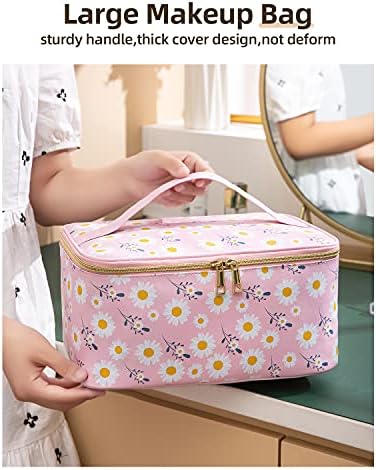 ????????????【UPGRADED DESIGN 】— We have designed a thicker cover to prevent the large makeup bag from deforming. Upgrad the makeup brush pocket so that you don’t worry about the powder on your makeup brush falling into the bag after use.Also upgraded the adjustable compartment of the large cosmetic bag so that you can adjust the size of the compartment freely according to the size of your makeup products.